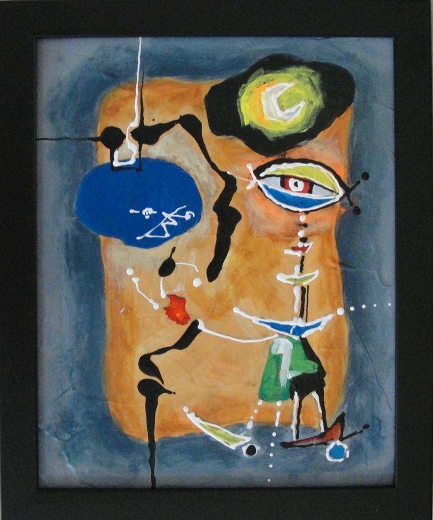 Acrylic on masonite, image size 8x10, frame size outside dimensions, 11.25 x 9.25.