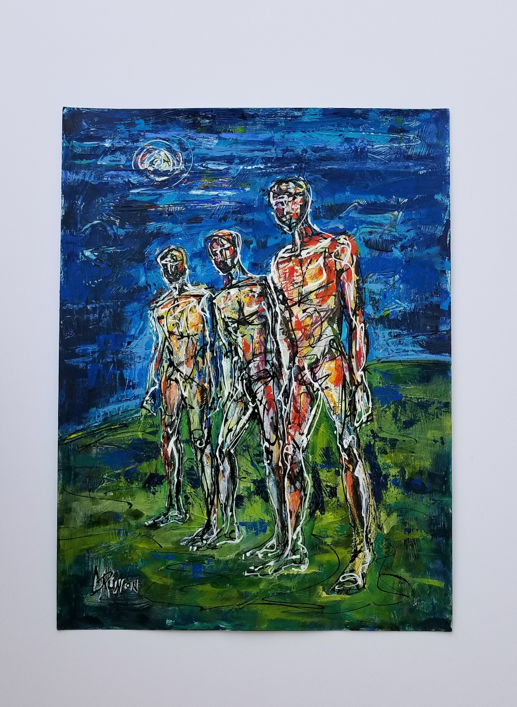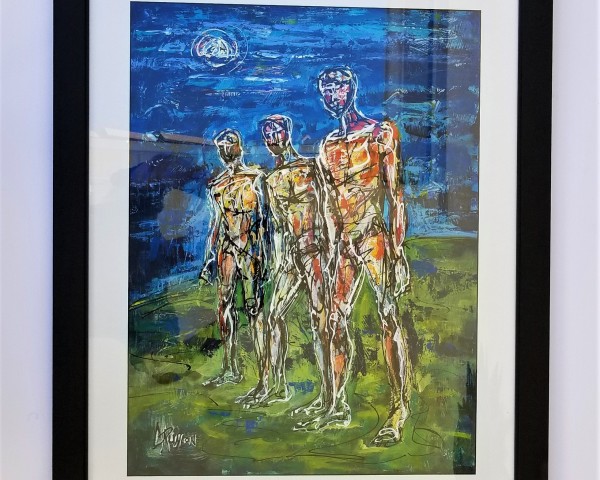 Acrylic and mixed media on watercolor paper, matted and framed. Frame 31X25 outside dimensions, image size 24x18.