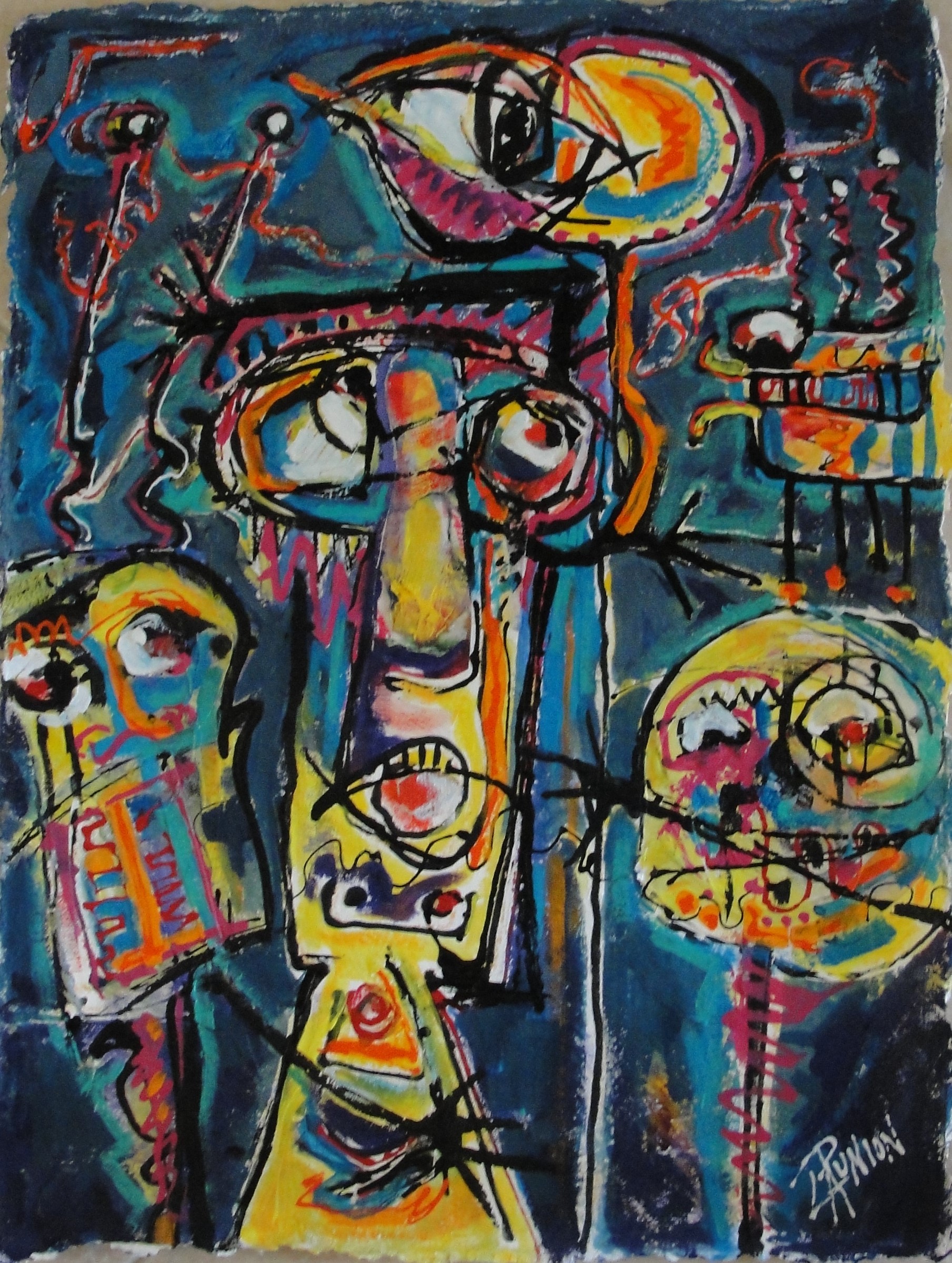 Acrylic and mixed media on 300lb. watercolor paper, image size 31x23, unframed.