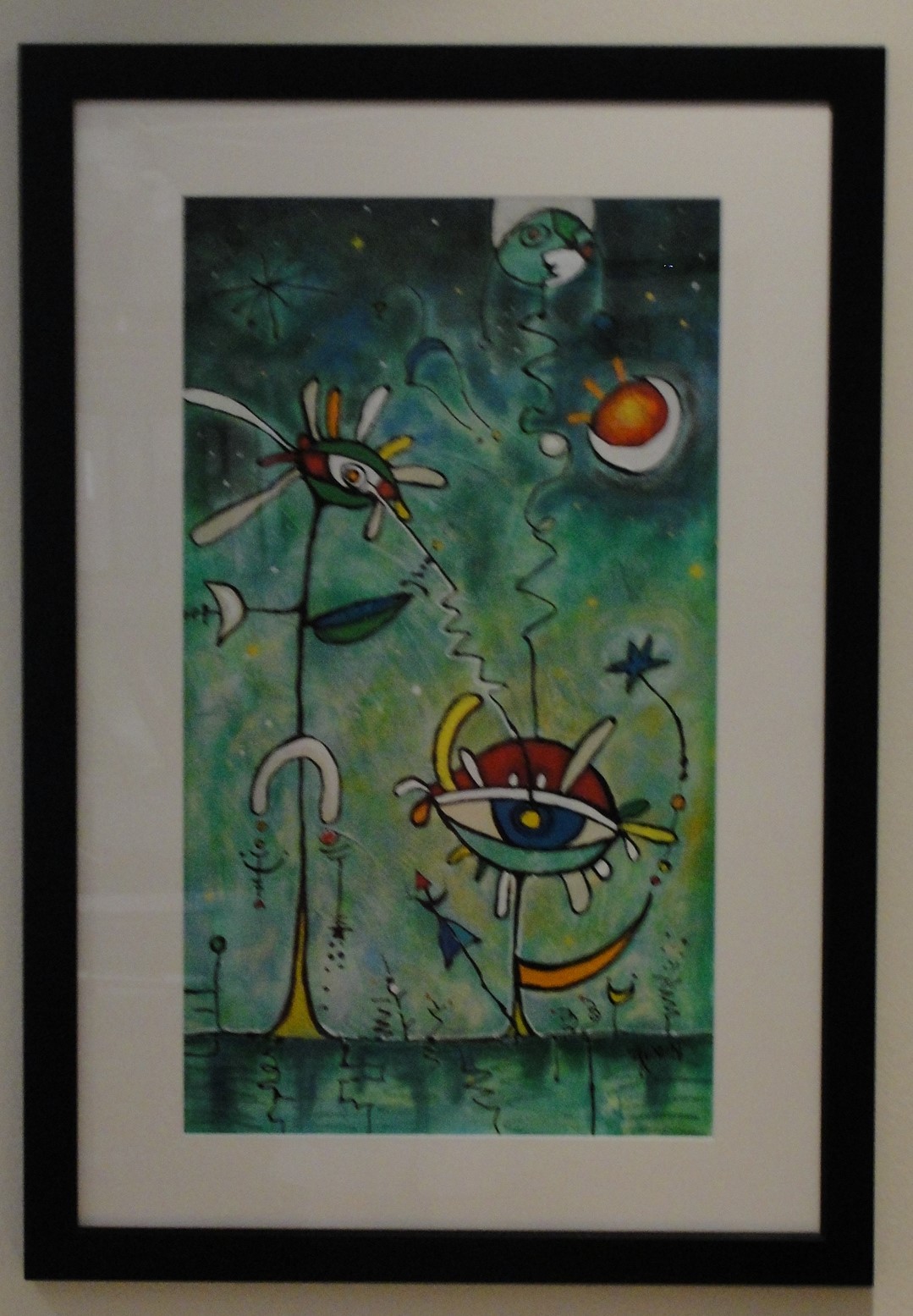 Acrylic and mixed media, framed and matted, image size 29.5 x 17, frame size outside dimensions 39 x 27.