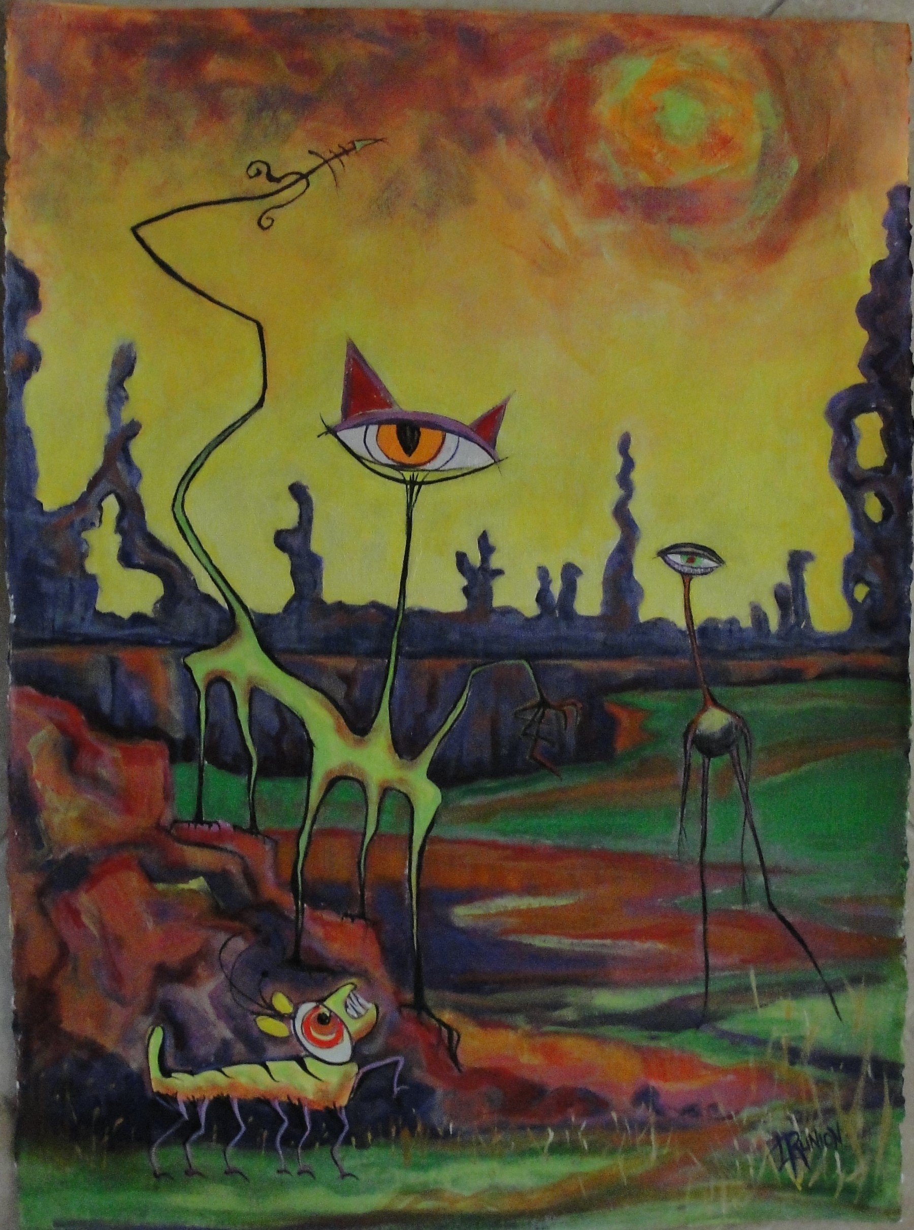 Acrylic and mixed media on 300lb. watercolor paper, image size 30x22, unframed