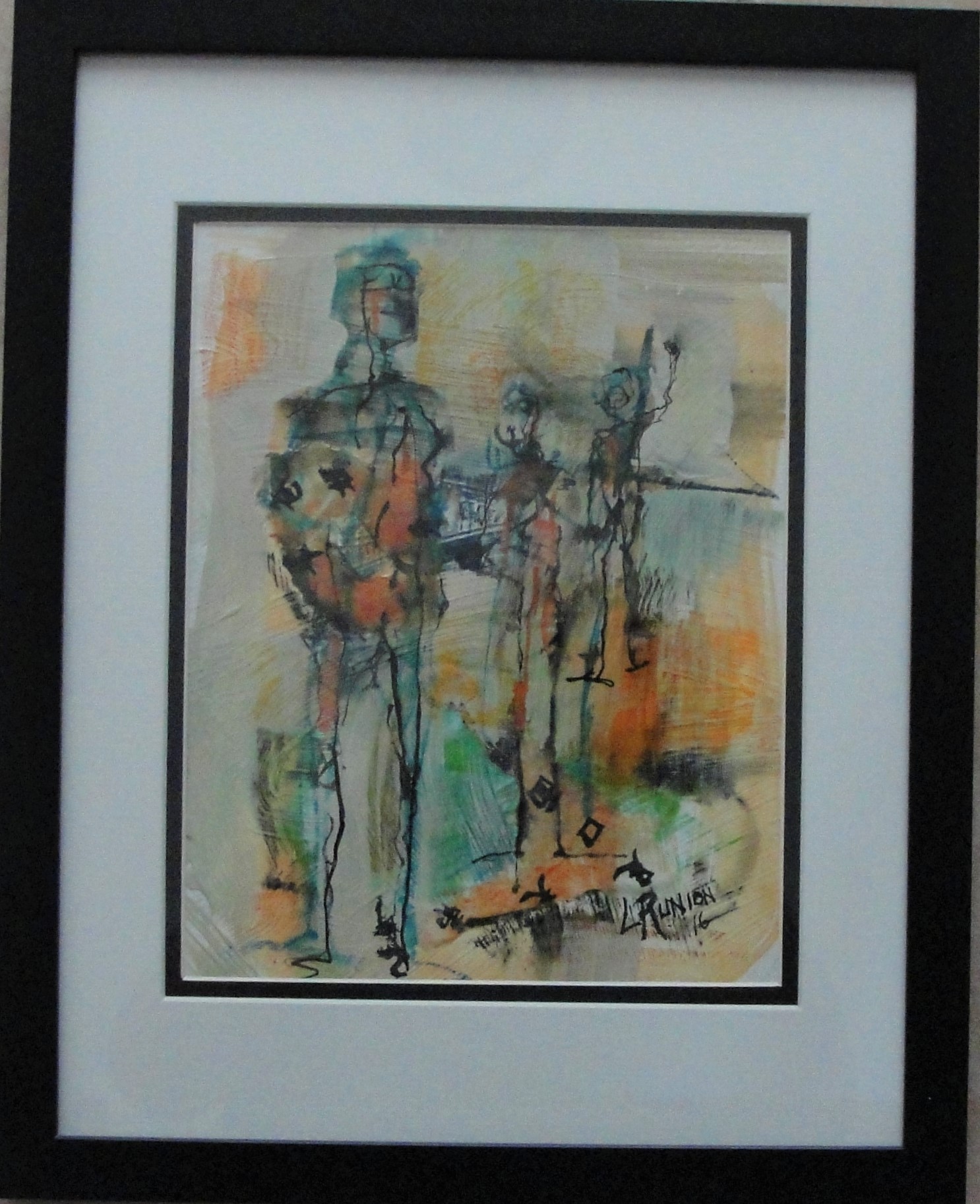 Acrylic and mixed media, framed and matted, frome 15.25x12.25, image 10x8
