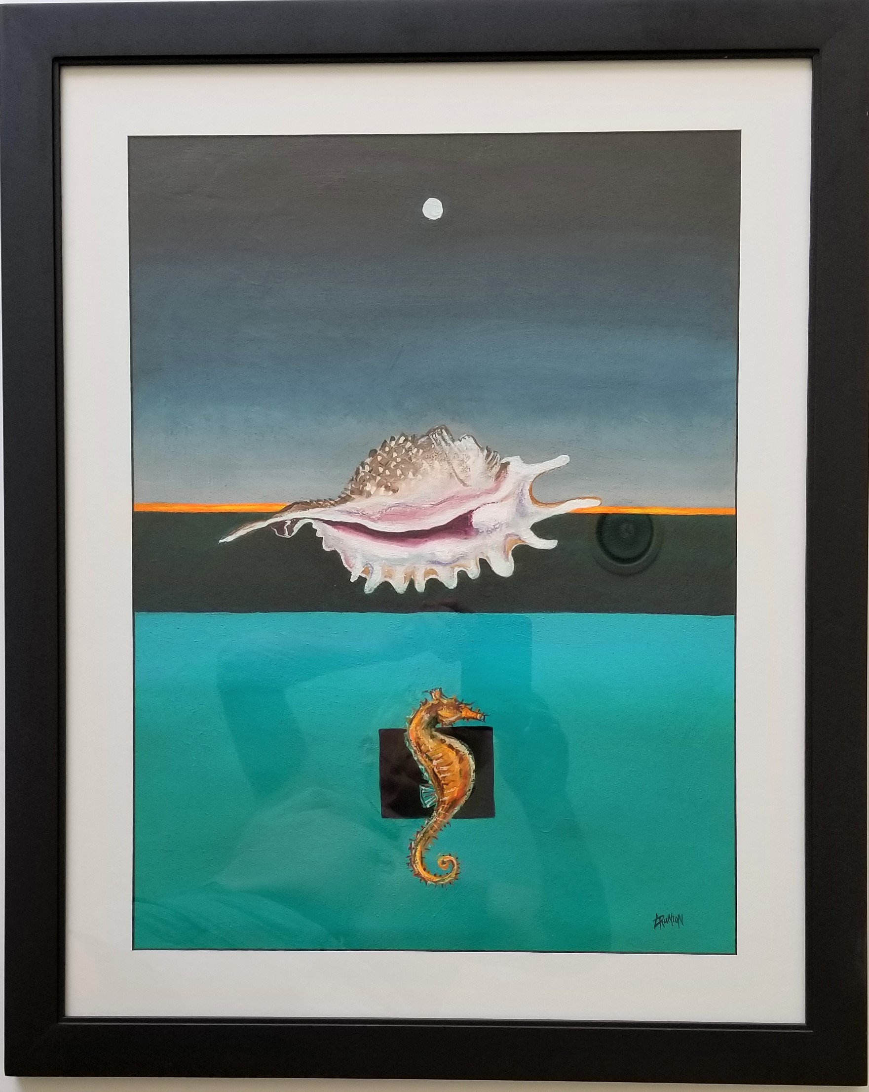 Acrylic on heavy watercolor paper. Image size 24"x18" unframed. Framed size 22"x28" with white matte and black beveled edge.