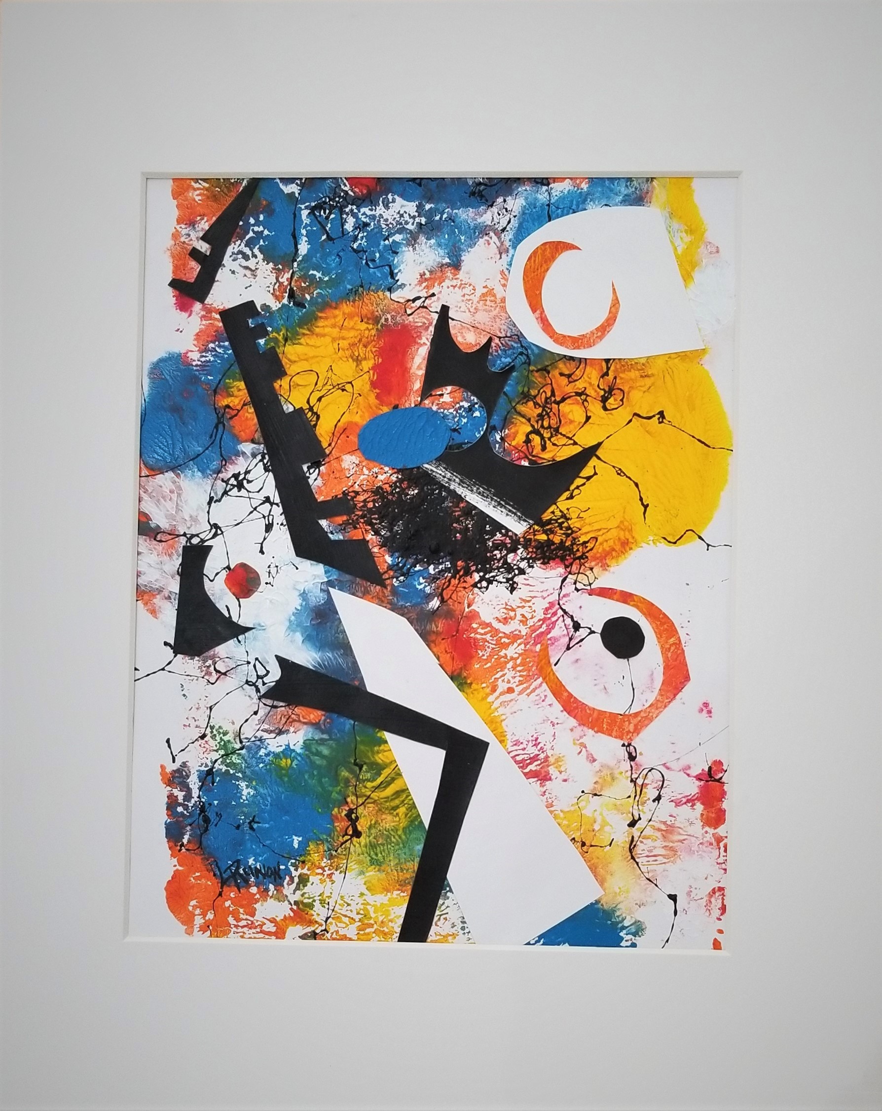 Monoprint on bristle board with mixed media, image size 14x11, with 20x16 white beveled mat.