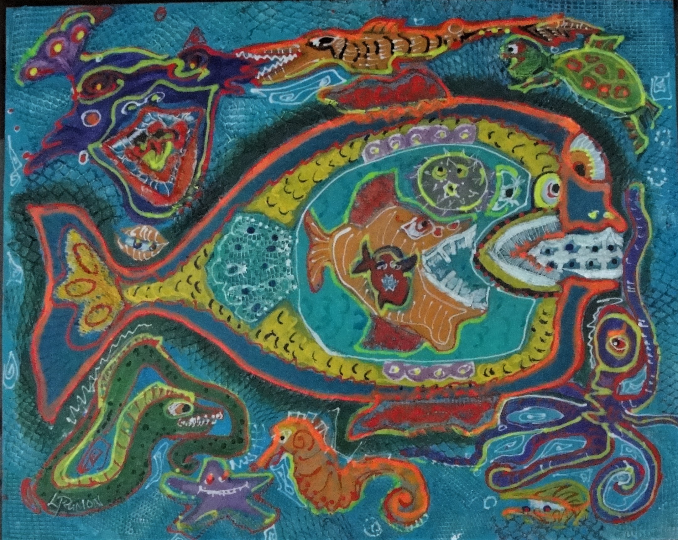 Acrylic and mixed media on 20x16 canvas board, unframed.