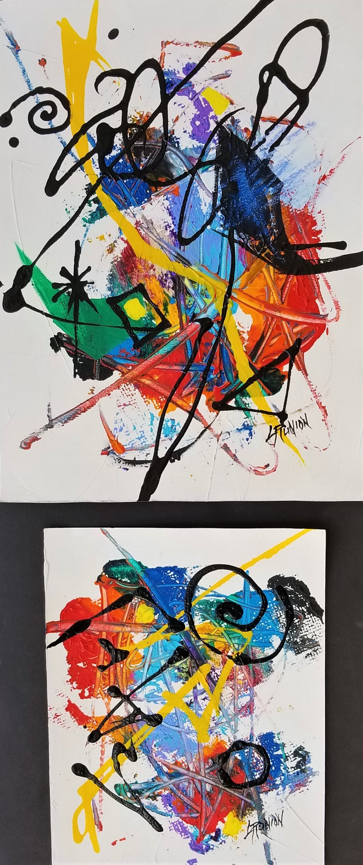 Dyptych, acrylic on water color paper, 10 1/2" x 14" and 8"x10", unframed.