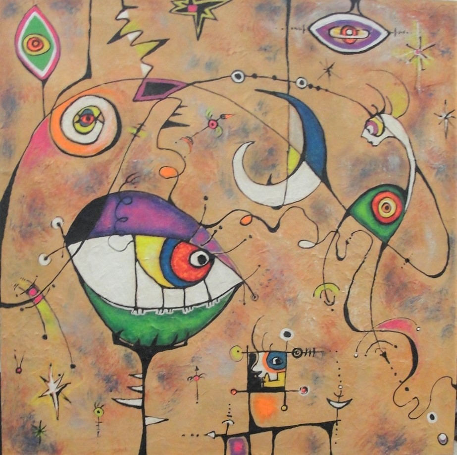 Acrylic and mixed media, 32"x32" 1.5" Gallery wrapped canvas, ready to hang.