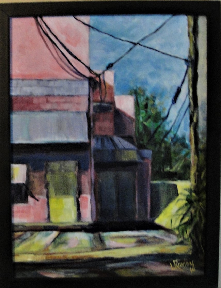Acrylic on canvas board, framed, image 12x9, framed outside dimensions 13x10.