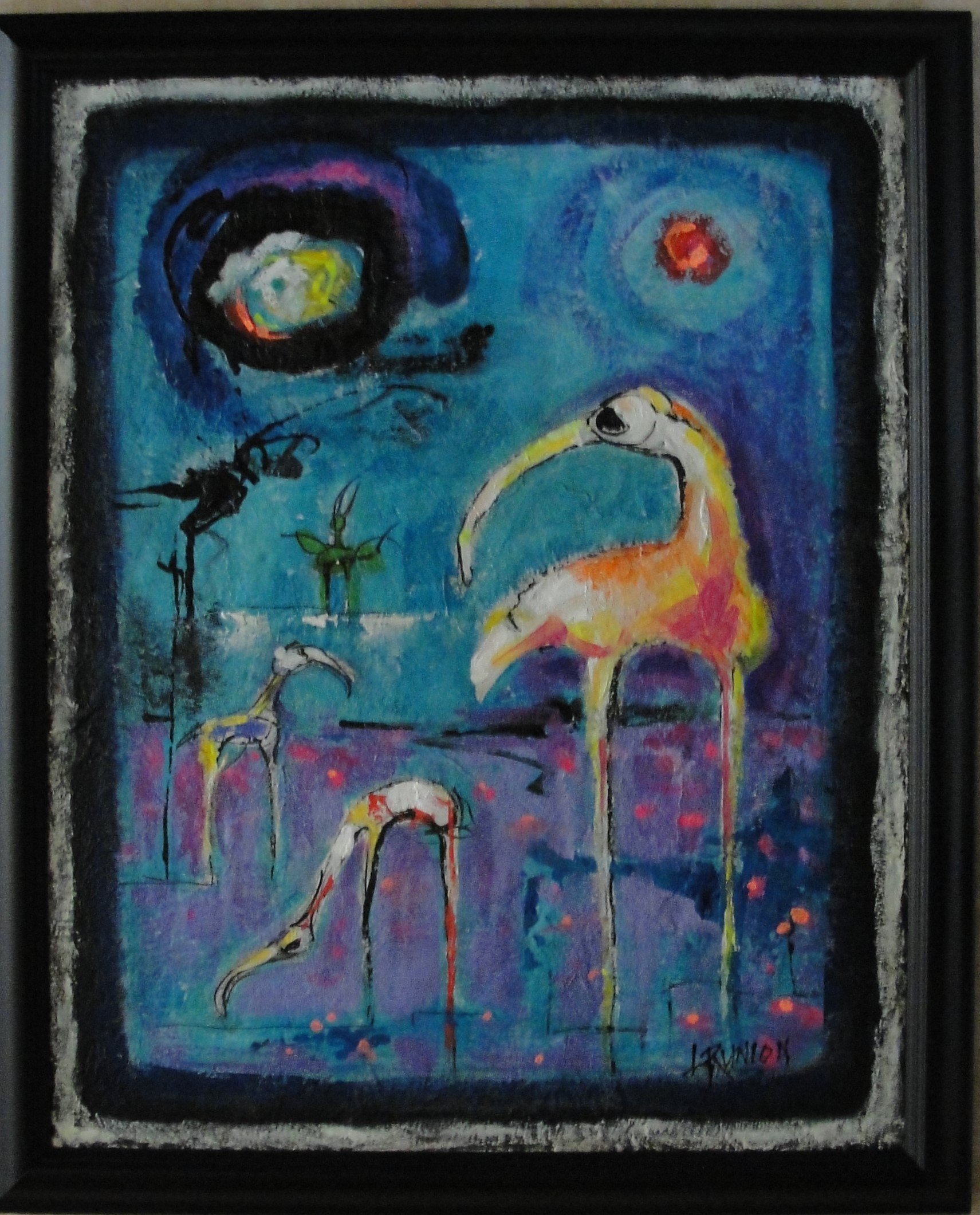 Acrylic and mixed media , 20x16 on canvas board, framed.