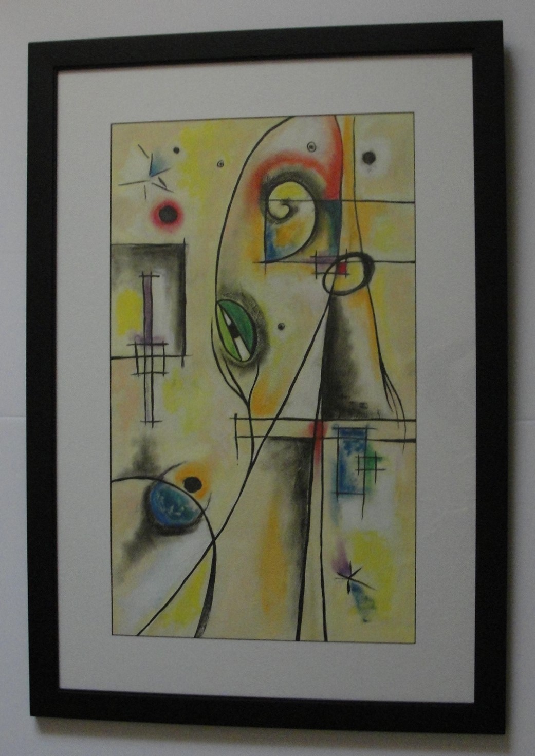 Acrylic and pastel, framed and matted under glass. Frame outside dimensions, 39"x27", image size 30"x18"